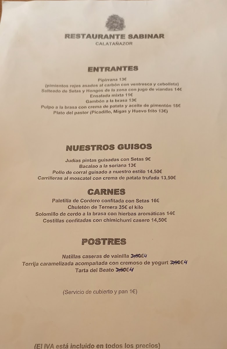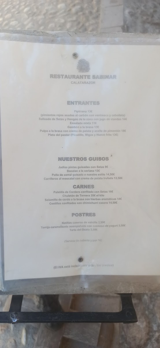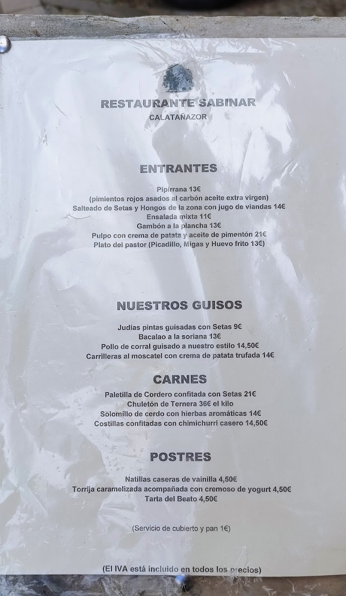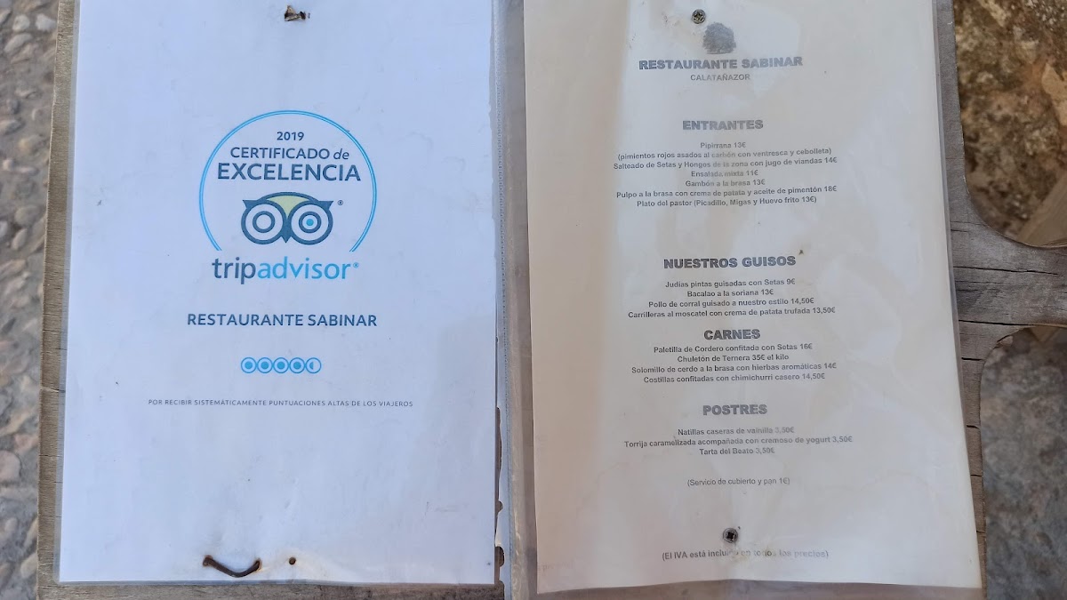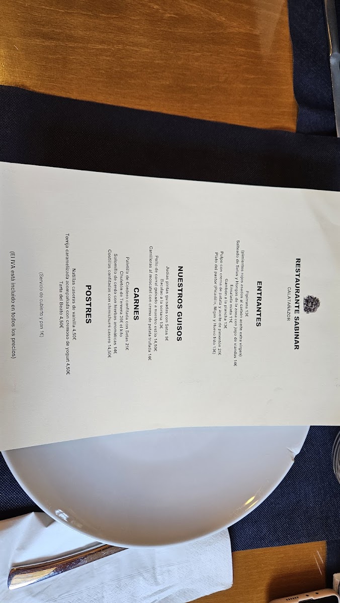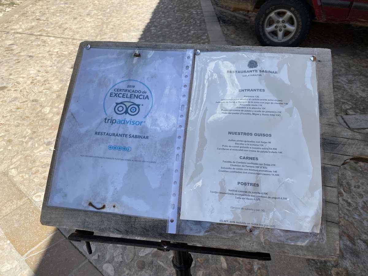 Welcome to Restaurante Sabinar, a hidden gem located at C. Real, 39 in the picturesque village of Calatañazor, Soria, Spain. This charming eatery, with its intimate setting featuring just four tables, offers a delightful menu aimed at those craving authentic Spanish flavors. Diners can indulge in the highly praised menú para dos personas, which showcases highlights such as mouthwatering pork cheek served with creamy mashed potatoes, exquisite mushrooms, and the traditional dessert of torrijas. The ambiance is further enriched by the warmth of friendly service from the owner-chef, who ensures a welcoming experience for all guests, including furry companions. Nestled near the stunning castle view, Restaurante Sabinar invites you to savor quality dishes at a reasonable price, making it a must-visit for both locals and travelers alike.